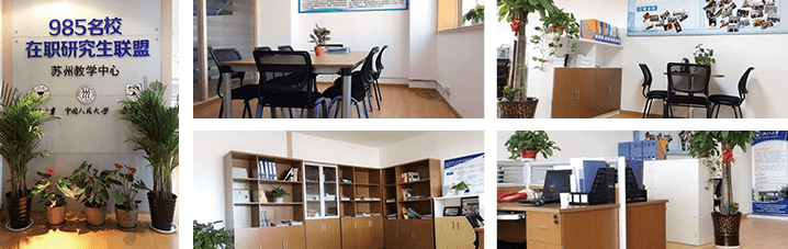 苏州教室始建于2013年11月份,从浙江大学企业管理,浙江大学金融学,浙江大学法学,中国人民大学人力资源,中国人民大学心理学,中国政法大学项目开始进行招生。办公室目前设在苏州工业园区星海街200号星海国际广场1005室,教学使用面积近200平。教室毗邻办公区,目前设有50-90人教室。多班级上课教室使用方便。